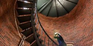 There are 33 steps up the spiral staircase in the lighthouse Tower and eight more up the ladder to the lantern room where the Fresnel lens is located.