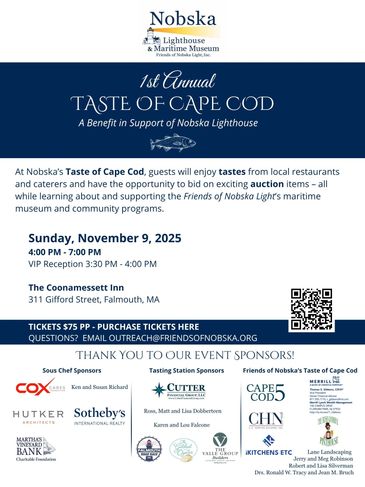 Taste of Cape Cod is a new, annual fundraiser brought to you by the Friends of Nobska Light to benefit the iconic Nobska Lighthouse and support the organization’s mission to preserve, educate and share the rich maritime history with future generations.