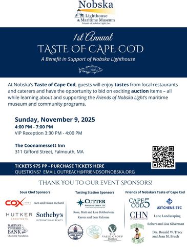 Taste of Cape Cod is a new, annual fundraiser brought to you by the Friends of Nobska Light to benefit the iconic Nobska Lighthouse and support the organization’s mission to preserve, educat